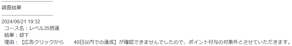 で、期限ギリギリにレベル35になったのですが、承認されず、お問い合わせしても却下されました