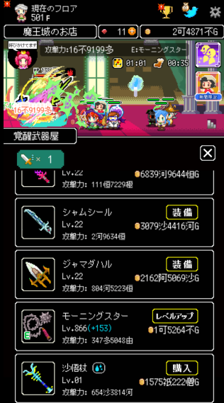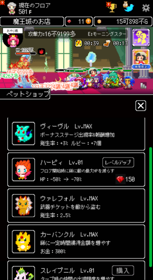 内容は放置ゲーム。ちょっとずつ鍛えて魔王城を登っていく