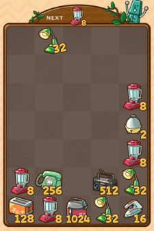 DROP2048は、nとnのブロックをくっつけると2nのブロックができる落ち物パズルゲーム