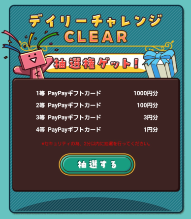2024年7月12日:デイリーチャレンジクリアでPayPayポイント3ポイント