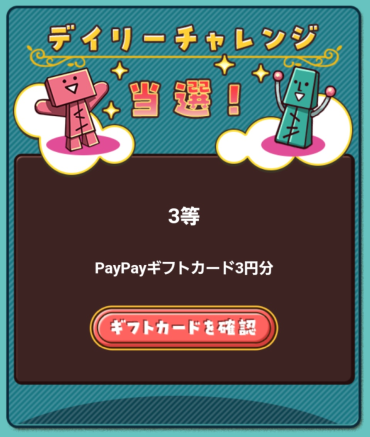 2024年7月11日:デイリーチャレンジクリアでPayPayポイント3ポイント