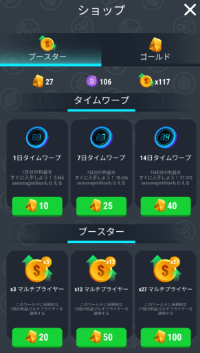 広告を見ると4時間分のスピードアップ・ブーストのやつは、何かの倍率に+1されるだけであまり効果がないような気がする